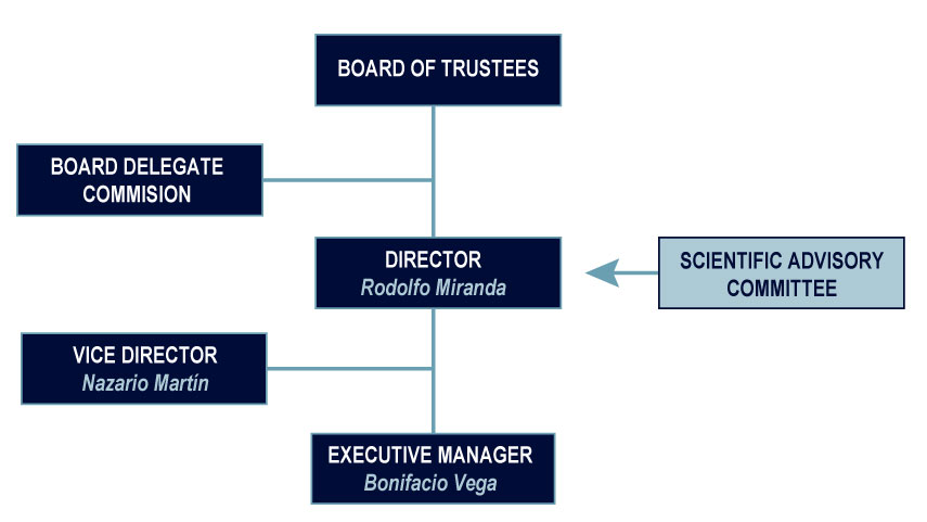 The Board of Trustees appoints a Director with executive powers whom is responsible for leading all operations and organizing the activities and strategies of the foundation in line with its foundational objectives. Since its establishment the Director of IMDEA Nanociencia has been Prof. Rodolfo Miranda. Reporting to the Director, the Vice Director assists in main decision-making and in institutional outreach and communication. The Vice Director of the Institute is Prof. Nazario Martín.